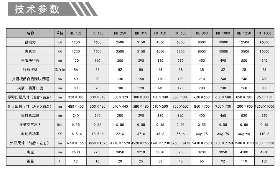 HK系列平鍛機,是近幾年性價比較高的一-款機型,該機凹模面是水平的,模槽也是水平排列,但上機身是固定不動的,它用拉緊螺栓和下機身緊緊相連結在一-起,如開式壓力機的開式機身-樣,故有開式水平分模平鍛機之稱。該平鍛機應用范圍較廣,主要生產扳手、高鐵道叉、螺栓、凸輪軸、抽油桿等各種異形工件。